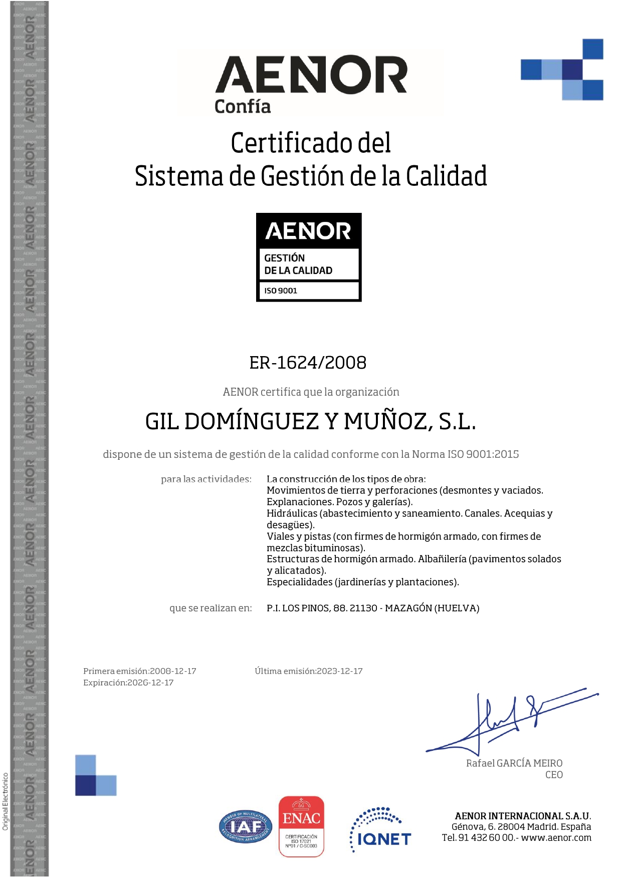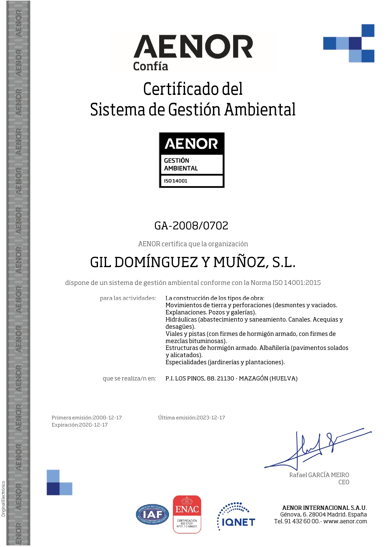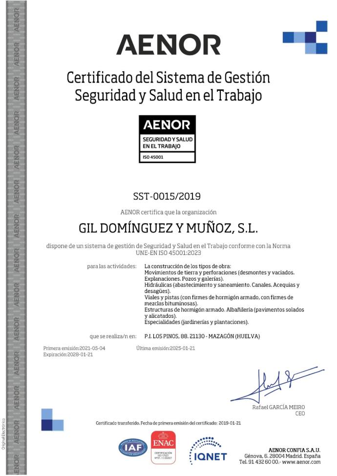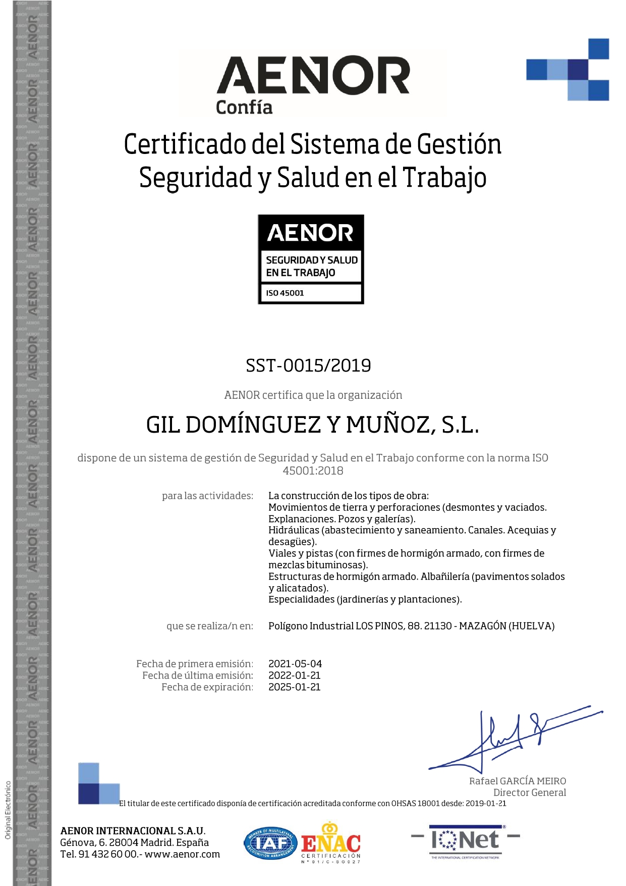 - Nº INCRIPCIÓN RERA (REGISTRO DE EMPRESAS CON RIESGO POR AMIANTO) Nº 21/00068